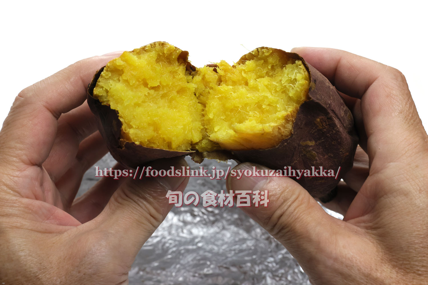 「あまはづき」は農研機構が「からゆたか」を母、「谷05100‐172」を父とする交配から育成した、低温糊化性でん粉を持つサツマイモの新品種です。焼き芋にすると一般的なサツマイモよりも低い温度帯からでん粉の糊化が進むため、長期貯蔵せずとも甘くネットリとした焼き芋になるのが特徴です。