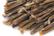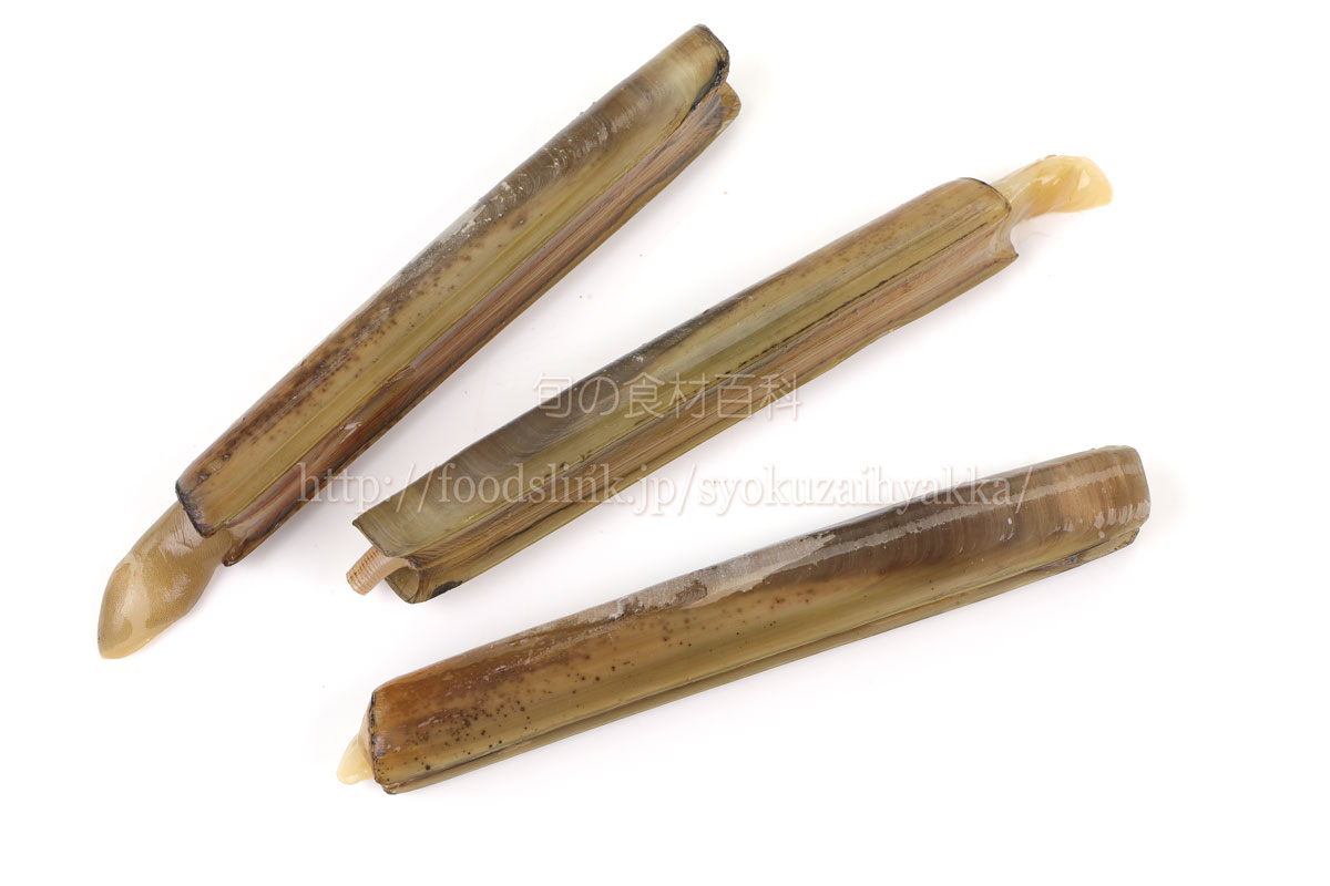 マテガイの大きさは殻長10~12cm程、殻高1.6cm程で、左右の殻がそれぞれ極端に細長い長方形で、ふくらみは浅い。表面の色は生息環境などにより個体差があるが、艶のある薄い茶色から濃い茶色で細い成長線がある。マテガイの軟体部は円筒状になっていて、殻の長辺は軟体部がつながっており、足は下方の先端に延び、水管は上方の先端から延びる。