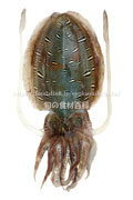 カミナリイカはコウイカ属の中では大型種で、市場に並ぶのは外套長20~30㎝程のものが多いが大きいものになると40cmほどにもなるという。コウイカと同じように胴の部分は扁平した砲弾のような形で、エンペラは外套膜の左右全体にわたって広がっているが、その幅は狭い。