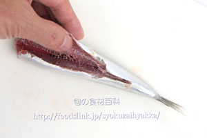 骨と尾ビレを尾の付け根で切り取る。