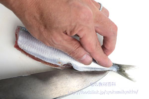 イワシの皮は包丁で引かず、手で剥くことができます。