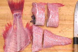 サンコウメヌケとオオサガはいずれも身質はほぼ同じと考えて良いだろう。身はほんのり桜色の白身で血合いは薄く少ない。身と皮の間にはたっぷりと脂と旨みがあり、身自体にも脂が多く、加熱調理すると弾力のある食感に仕上がる。
