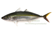 ムロアジは標準体長40cm程で、大きいものだと50cm程のものもみられる。ムロアジ属共通の特徴として、体形がマアジに比べスリムな紡錘形で、側扁はあまり強くなく、脂瞼が発達し、尾柄部に小離鰭が付いている。ムロアジの稜鱗(ゼンゴ)は側線直走部の後3/4を占めること、体側に黄色い縦帯が1本あり、尾ビレの上葉が黄色く、下葉は赤みを帯びた淡灰色である