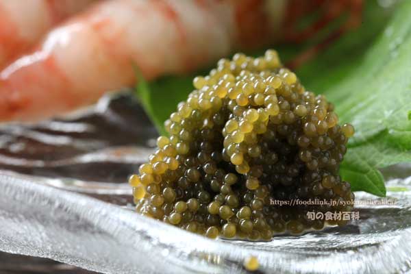 イバラモエビは子持ちのものも多いが、卵は比較的粒が大きめで味も良く、身と卵の両方が楽しめるのでお勧め。