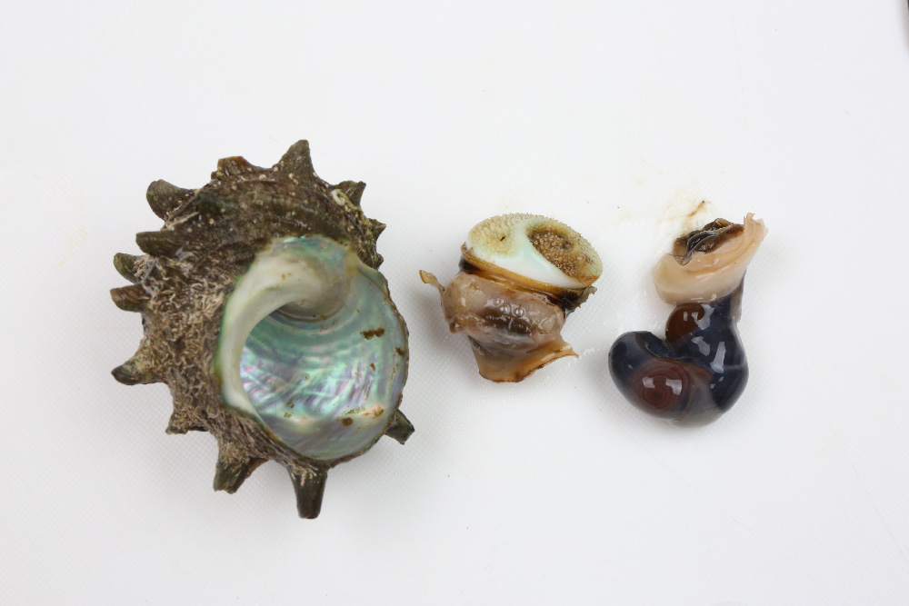 これで、殻から蓋付きの身(足の部分)とワタの部分が取り出せました。