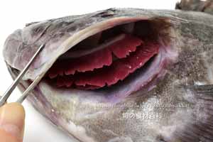 エラ蓋を開けてみてエラの色をチェックします。鮮やかな赤い色であれば新鮮。鮮度が落ちるにしたがって色が抜け、肌色から茶色っぽい色になってきます。