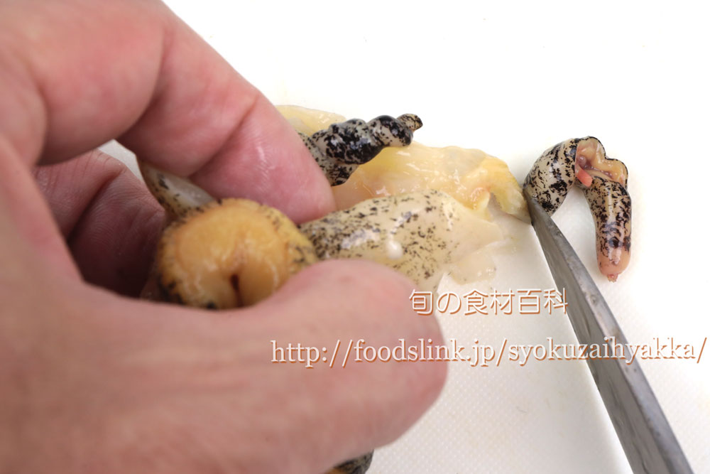 食べられるのは身の部分とヒダ、ウロとも呼ばれる渦巻き状の部分で、貝のフタとウロ以外の内臓、そして唾液腺は食べられません。