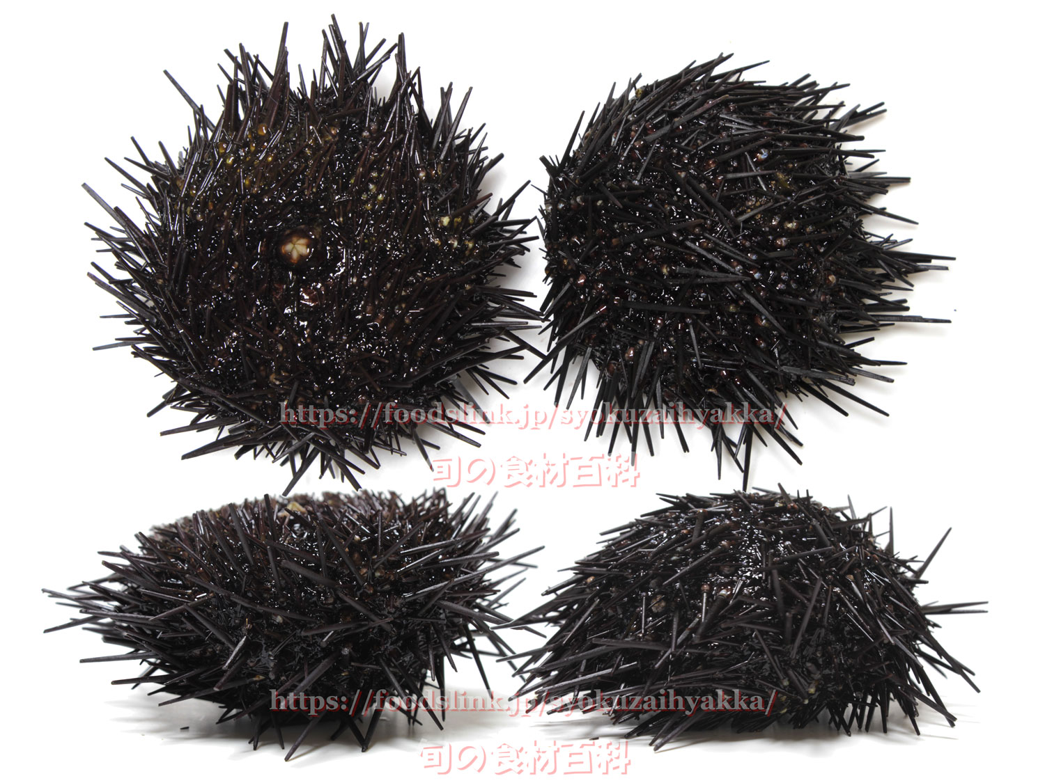 全体の色は黒に近い紫から暗褐色で、中の身はバフンウニやエゾバフンウニに比べ色が黄色っぽく薄い傾向にある。