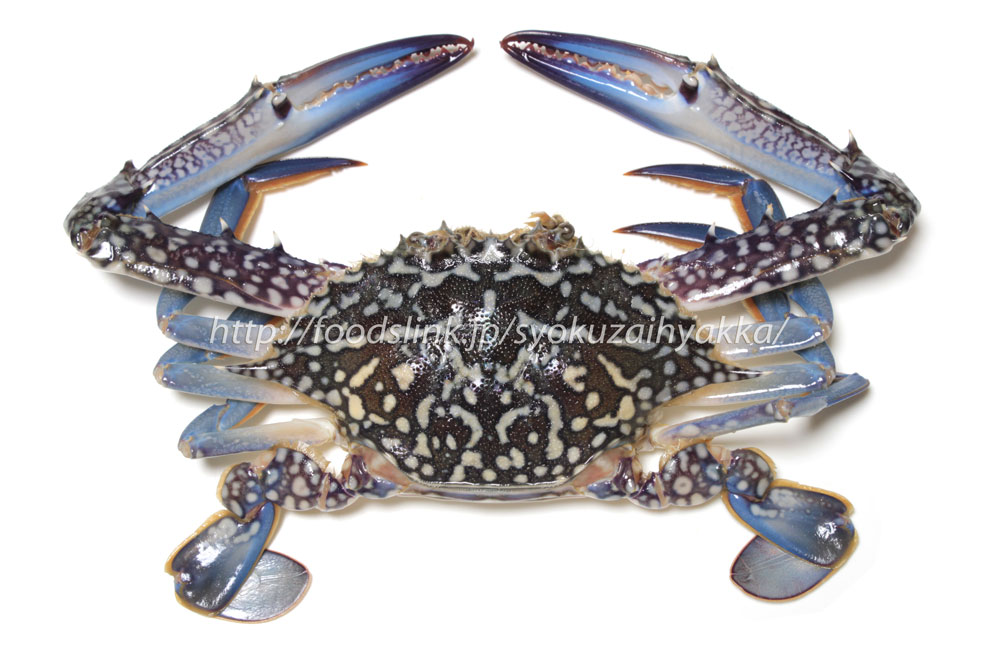 雄は脚は左右全て青色が入り、特にハサミの部分は鮮やかな青色のものが多いです。そして甲羅に不規則な白い模様があり、この模様は茹でて甲羅が赤くなっても白く残ります。