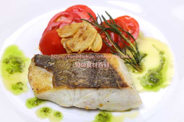 ニンニクとローズマリーを効かせながらオリーブ油で皮目をカリッとなるまで焼き上げ、裏表を返して火を止め、余熱で中まで火を通します。身は火を通しても硬く締まらずジューシーで、バジルソースとの相性もいいです。