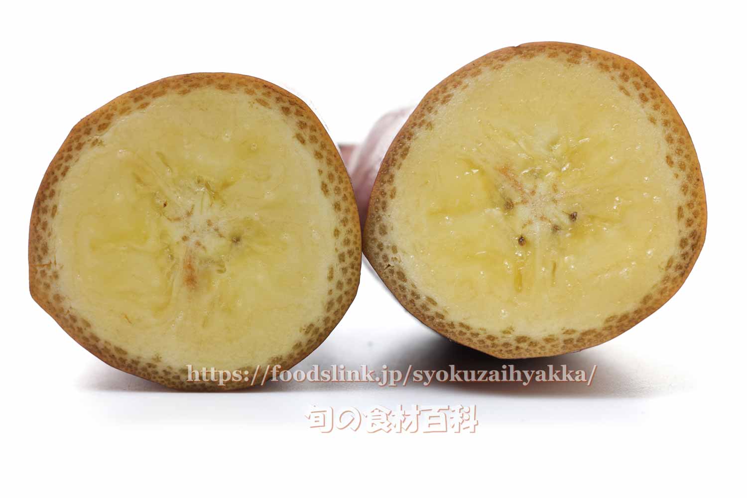 モラードバナナは一般のバナナのような黄色ではなく、赤茶色で名前の由来にもなっています。キャベンディッシュに比べ小ぶりで太短い形をしています。大きさや形、色や質感などが分かりやすいよう様々な角度から撮影しています。
