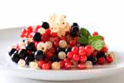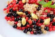 スグリ属のフサスグリ2種、赤すぐり(レッドカラント)と白すぐり(ホワイトカラント)、それにクロスグリ(ブラックカラント)の3色をミックスして撮影した写真です。