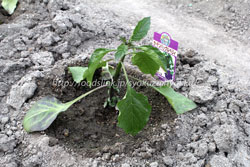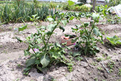 ホームセンターで買ってきたガーデン・ハックルベリーの苗2株を畑に直植え