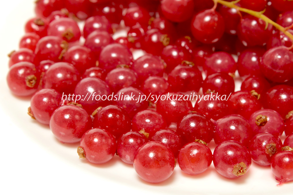 レッドカラントの実は直径5~10mmほどの球形で、蔓状の軸に房状に沢山の実がなります。果頂部には黒又は茶色のガクが残っています。
