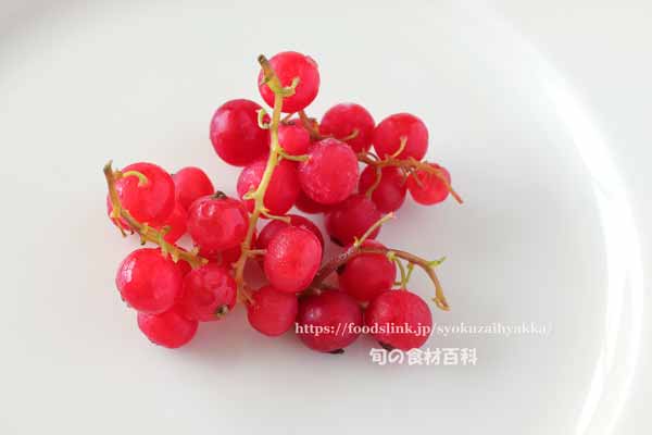 レッドカラントやホワイトカラントは一粒一粒に艶と張りがあり、色が澄んでいるものを選びます。また、鮮度が落ちてくると房から実が落ちやすくなってきます。軸を持ってみて、実が落ちずしっかりと付いているものを選びましょう。