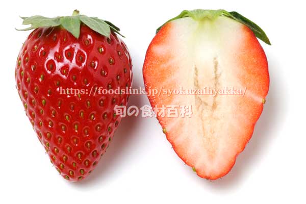 イチゴはなで肩の円錐形で、ヘタの付け根までしっかりと赤く着色し、果面は艶がありとても綺麗なイチゴです。