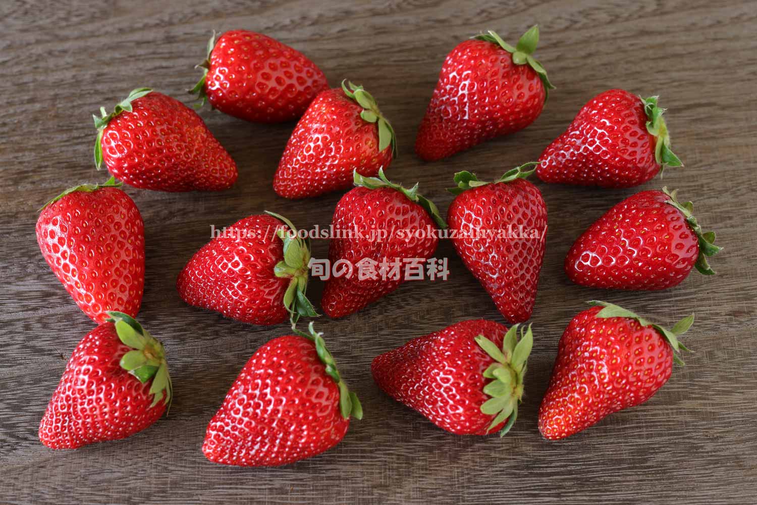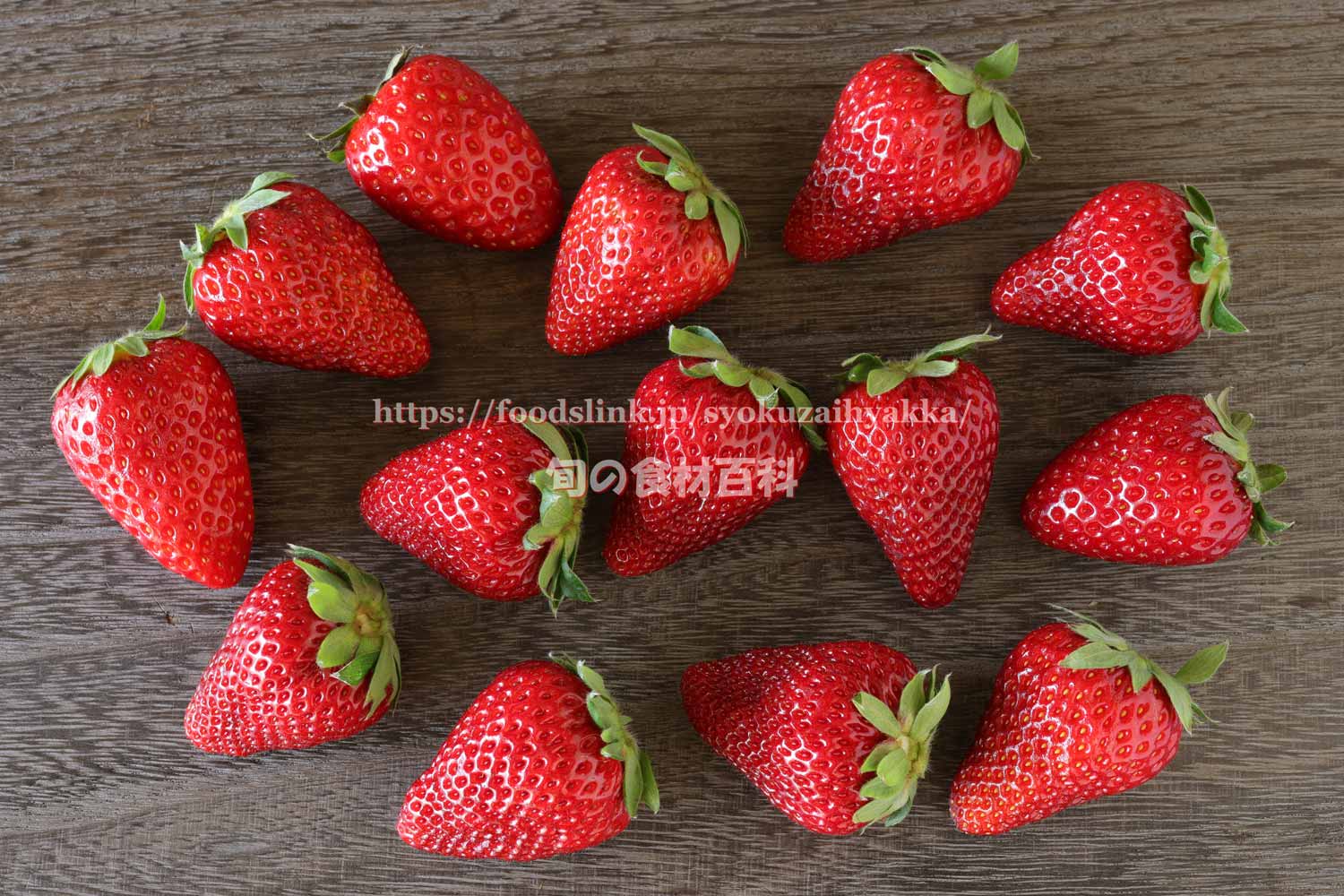 イチゴの品種、古都華/ことかの様々な写真を紹介します。古都華/ことかの果実は艶のある美しい紅色の表面と、均整がとれた綺麗な円錐形の形です。この品種は乱形果率が他の 品種と比較して特に小さいようです。果肉の色は中心部を除いて薄い赤で、中心部には少し空洞ができる物がありますが、それ程大きな空洞ではありません。