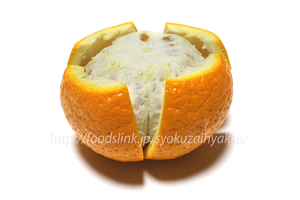 甘夏みかん/あまなつ/アマナツの様々な写真を紹介します。アマナツの果実は300g~500g程で、2023年に撮影したものは420gほど、2013年は360~440gでした。まるのままの姿と赤道切りした断面、それに皮をむいた状態やサジョウの状態を撮影しています。