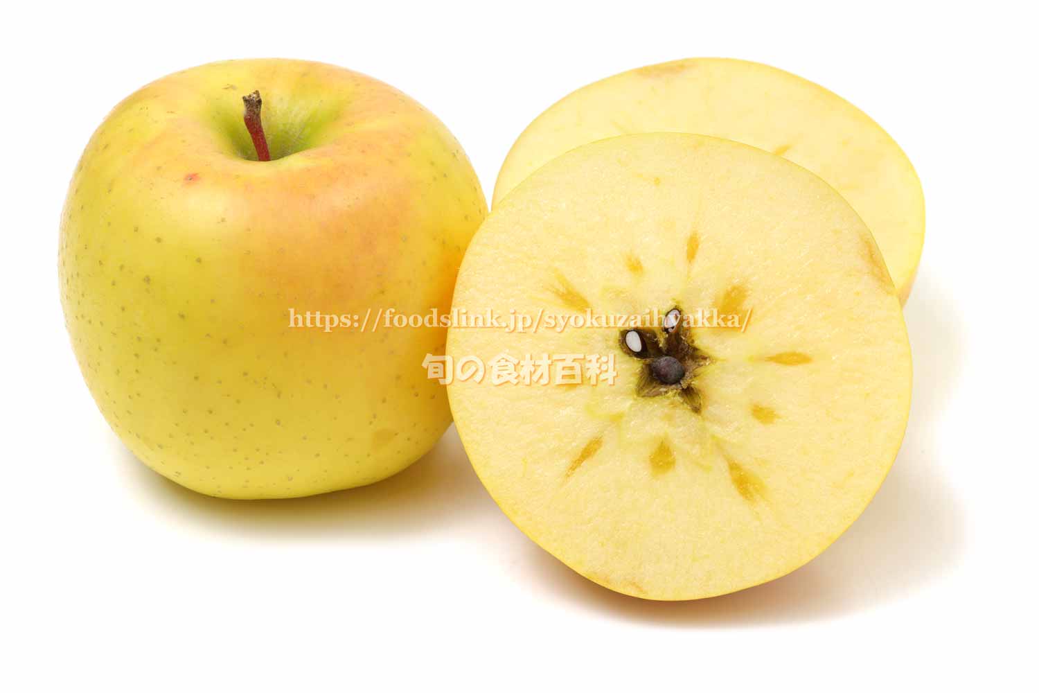 果肉の色は黄色みを帯びていて肉質はやや固く、噛むとしっかりとした歯ざわりが感じられます。甘味はやや強いのに対し酸味が少なく甘いリンゴで、蜜が入りやすく、その割に貯蔵性がいいのも特徴です。