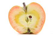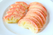 「ムーンルージュ」の果皮は黄緑から黄色の地色にややまだらな感じに淡いオレンジから赤橙に色付きます。果肉は果皮に近い部分が赤色から桃色になっているのが特徴です。蜜入りになりやすいという特徴もあります。
