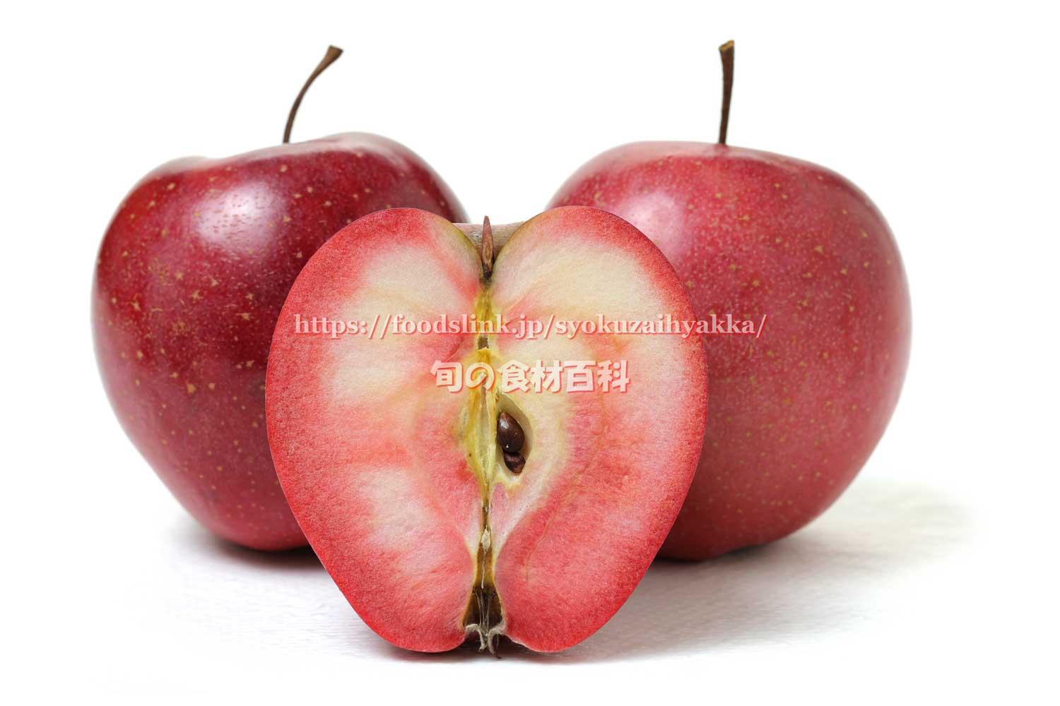 青森県産 レッド キューの断面と果肉 自然光 2022.10.22撮影