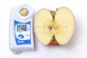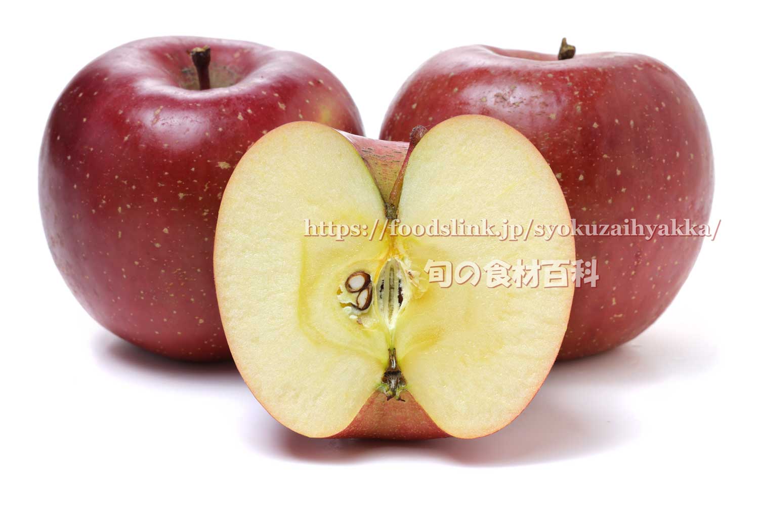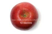 紅秋光の形はやや縦長の丸い形で王冠も無く、「ふじ」とよく似ています。果皮色は全体に濃赤色に着色し、やや大きめで目立つ白い果点が全体にみられます。紅秋光の大きさや形、色や質感が分かりやすいよう様々な角度で撮影しています。半分に切った断面も撮っています。