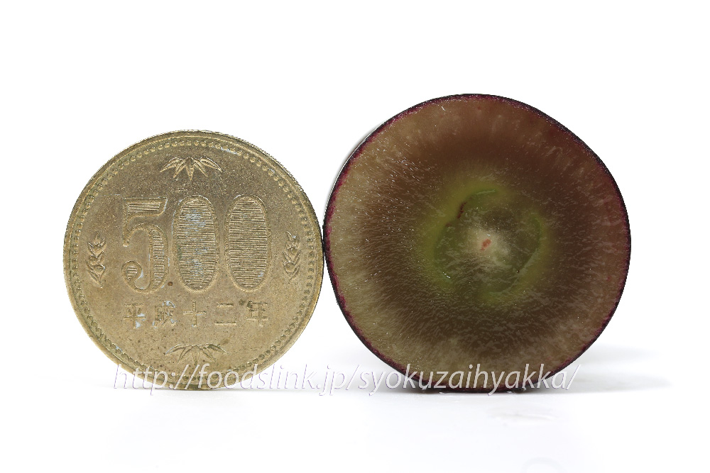 ぶどうの品種、ブラックビートの画像一覧です。撮影したブラックビートは山梨県産で果粒の大きさが500円玉よりも大きなもの4房です。特徴が分かりやすいよういろいろな角度で撮影している他、果粒の断面や皮を剥いた状態なども撮影しています。