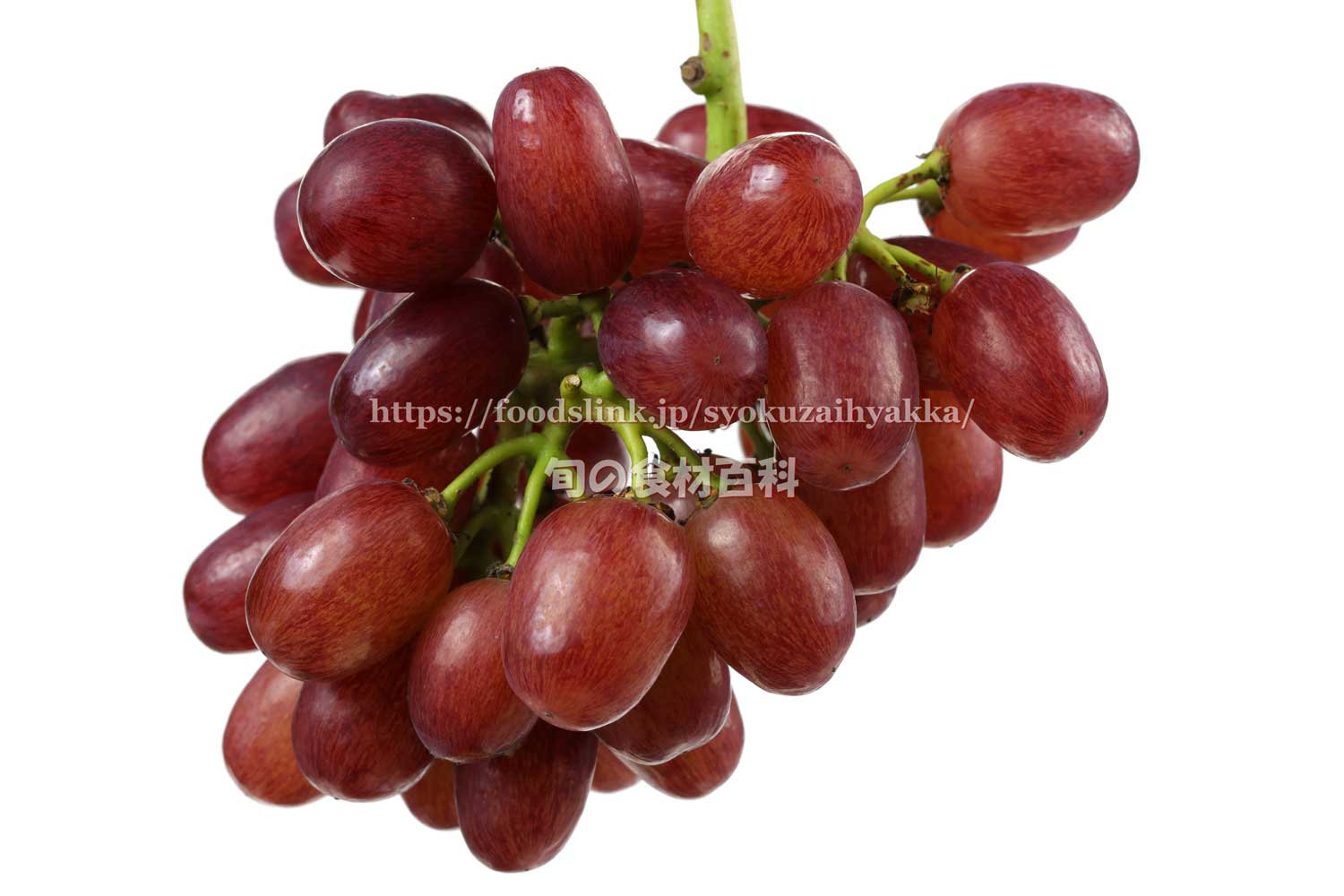 「クイーンセブン」は果粒の大きさは長さ3cmほどの長楕円で果皮色は赤紫に着色します。果肉は透明感のある乳白色、皮が薄く、皮ごと食べられるのも大きな特徴で、通常種無しにされる。