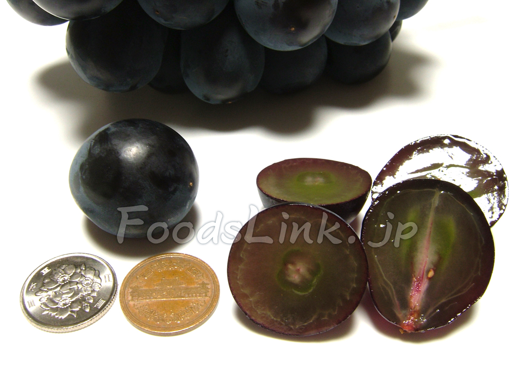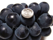 藤稔(ふじみのり)の最大の特徴は、粒の大きさです。大きいものだとピンポン玉ほどもあり、下の写真を見て頂ければわかるように通常でも500円玉ほどの直径があります。