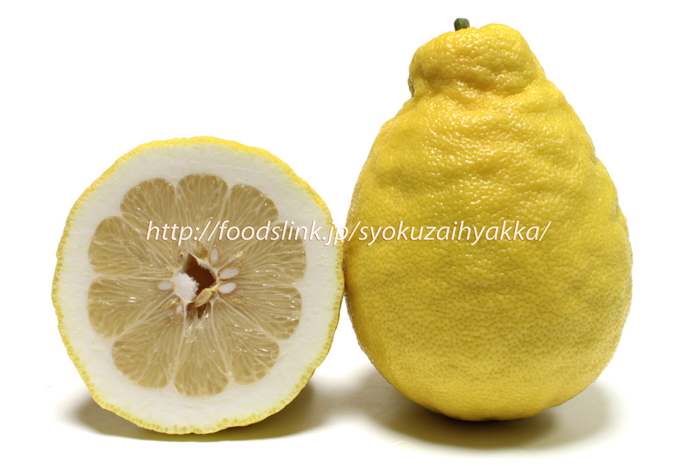果皮の色は明るいレモンイエローでレモンの良い香りがします。皮の内側にはアルベド(白い綿状の部分)が厚く存在していますが、バンペイユのアルベドより固く締まった感じがします。