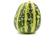 タイガーメロンは短楕円形のものから円錐のように下方がやや膨らんだ形の物が多く、果重は350g前後になります。果実表面は黄色の地に十条前後の濃緑色の縦縞が入るのが特徴です。