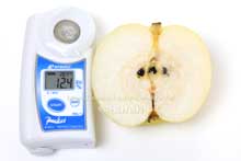 果肉の色は黄白,硬さはやや軟,粗密はやや密,切り口の褐変,甘味及び酸味は中,香気は少,果汁の多少は多,種子の形は卵,大きさは中である。