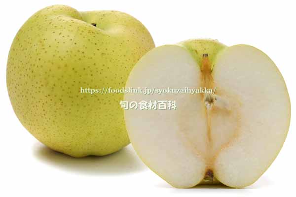 果肉の色は雪白、硬さはやや軟、粗密はやや粗、切り口の褐変は軽、甘味はやや高、酸味は弱、香気は少、果汁の多少はやや多、