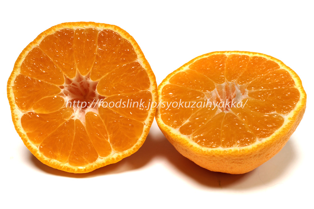 鹿児島県産不知火(デコポン)のブランド、大将季/だいまさきの様々な写真を紹介します。大将季/だいまさきの果実の形は扁球形で、一般的なデコポンに比べ頭のデコはやや低い傾向にあります。大きな特徴は色が果皮、果肉共にデコポンよりも赤みが濃い橙色であることです。