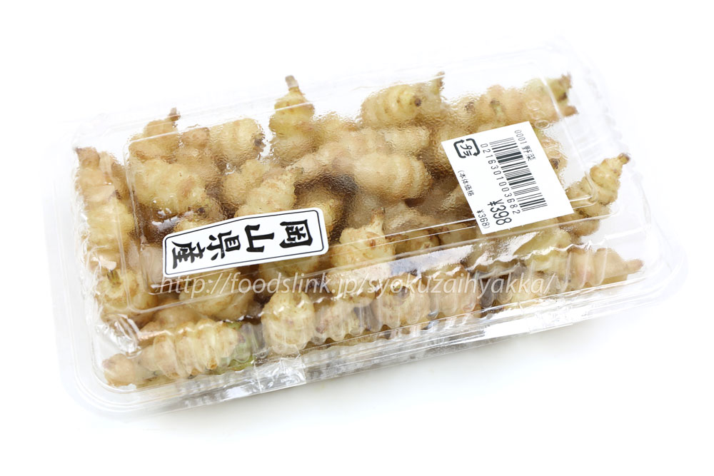食用とされる塊茎の部分は長さ2~4cm程で、数段のくびれがあり、細長い巻貝のようにも見えますね。収穫されたばかりの物は表面が真っ白ですが、時間の経過とともに黄色っぽくなってきます。