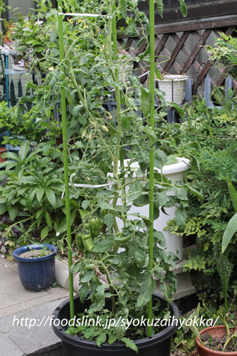 でも3段目は一つも着果せず・・・4段目に一つ実が大きくなってきたものがあります。5段目にも着果し、小さな実が付いてきました。