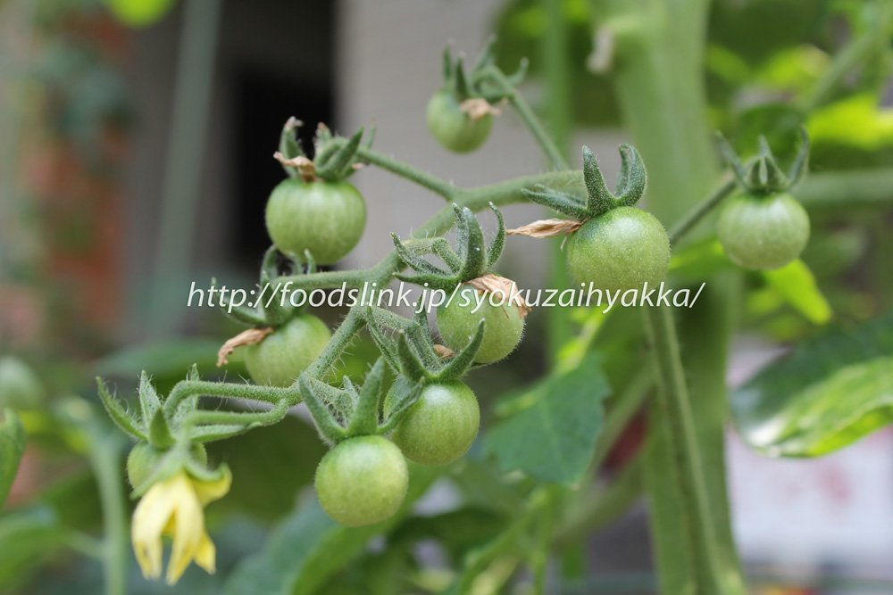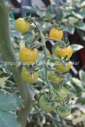 トマトが黄色く色付いてきました。表皮は透き通るような感じで果肉の筋が透けて見えます。