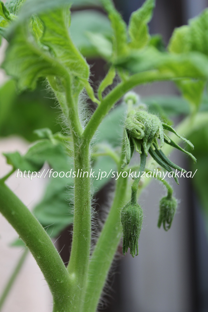 花ビラがようやく黄色くなってきて花らしくなってきました。花の様子も一般的なトマトのそれとは少し趣が違います。葉も凄く大きく広がってきました。