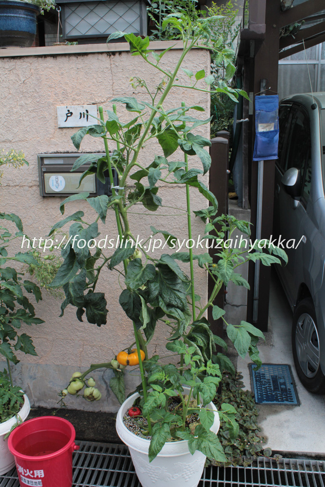 11日に収穫したものと合わせ2個を撮影しました。やや扁平で独特の形をした大きな黄色いトマトです。