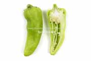 色はライムグリーンで、果肉はピーマンと同じくらいかやや肉厚です。辛味は全くなく、ピーマン特有の青臭さや苦みなどもほとんどありません。噛んでいるとほんのり甘味があり、ピーマンが苦手な子供でも食べやすいのが特徴。