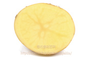 シンシアのイモはメークインに近い超卵形で目が浅く皮が剥きやすい。皮は黄白色で中の肉は淡黄色です。