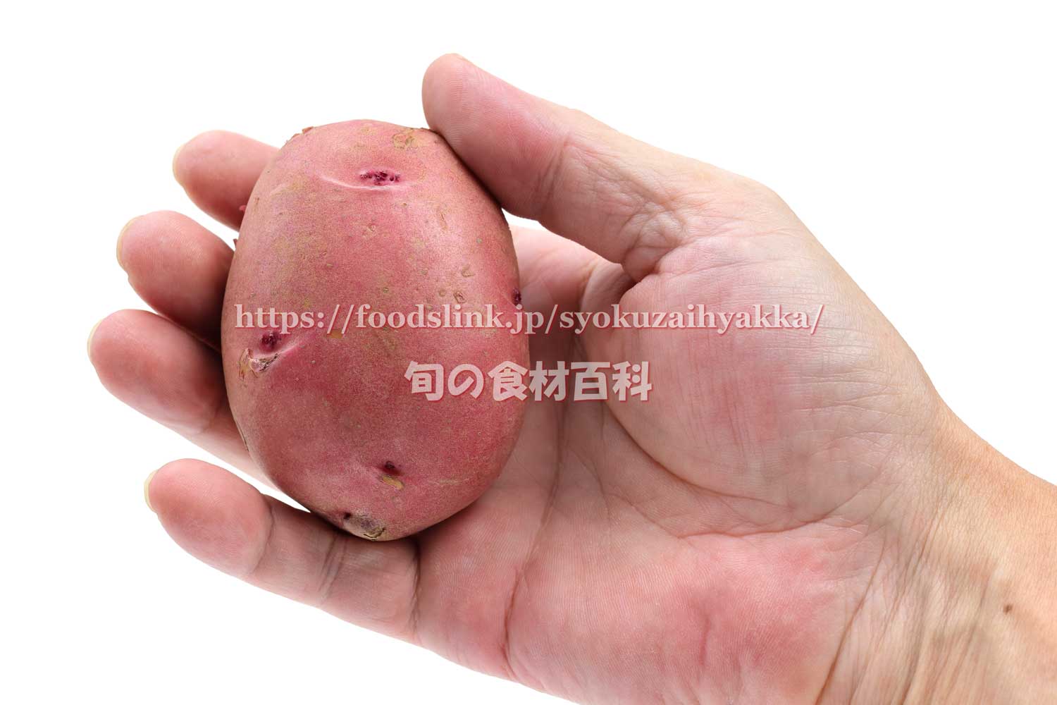 塊茎の皮色は赤、塊茎の表皮のネットは少、