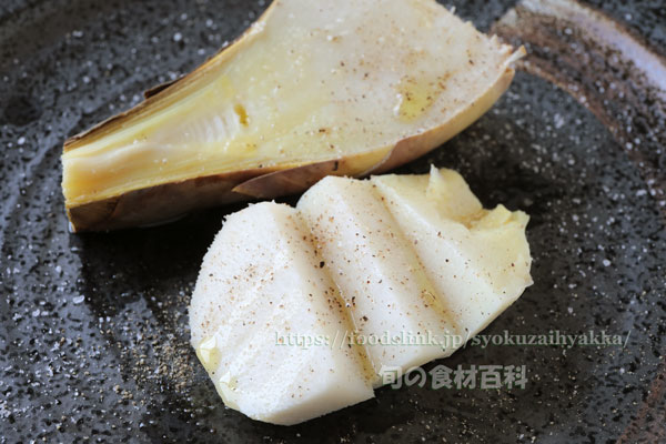 ほんのりと甘みがあり、香りは一般的なタケノコほど強くはなく、スイートコーンを思わせるような柔らかい風味があります。