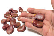 初姫のサヤは一般的なソラマメと同じ緑色ですが、中の豆の表面が赤いのが特徴です。撮影した初姫は筆者が鉢植え栽培で収穫したものです。特徴が分かりやすいよういろいろな角度で撮影しています。