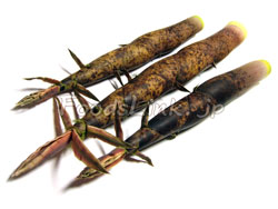 台湾辺りが原産と言われるバンブーの一種で、夏が旬という変わったタケノコです。国内では鹿児島県、宮崎県、熊本県で栽培出荷されています。