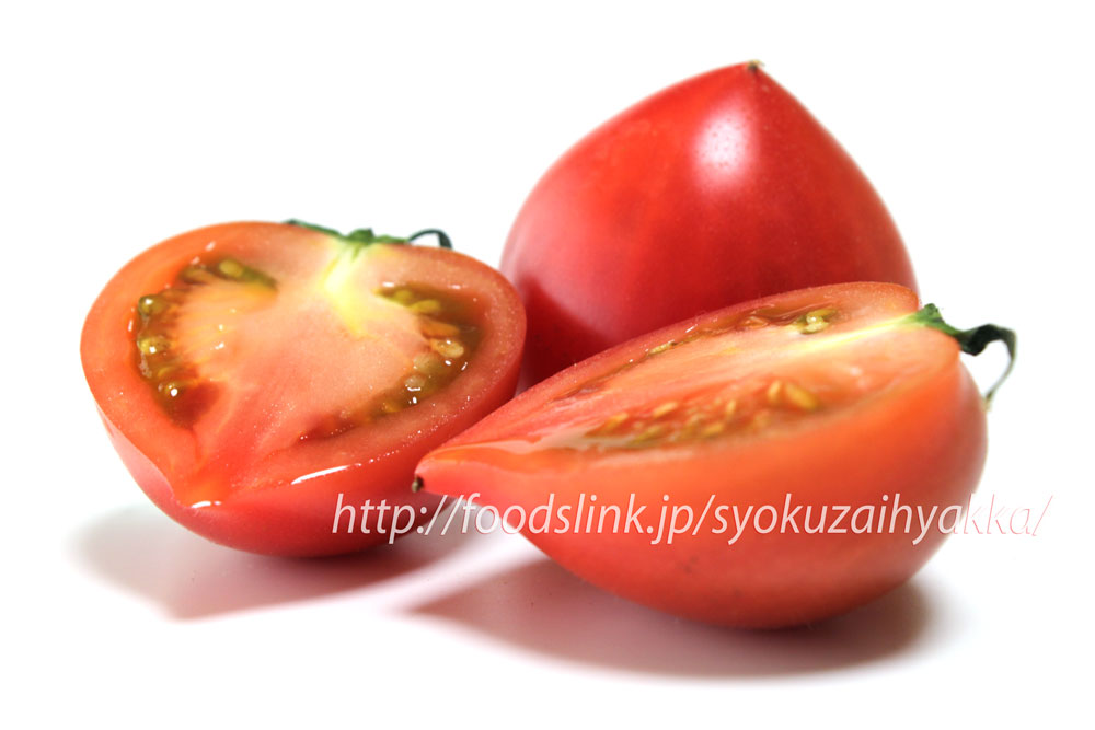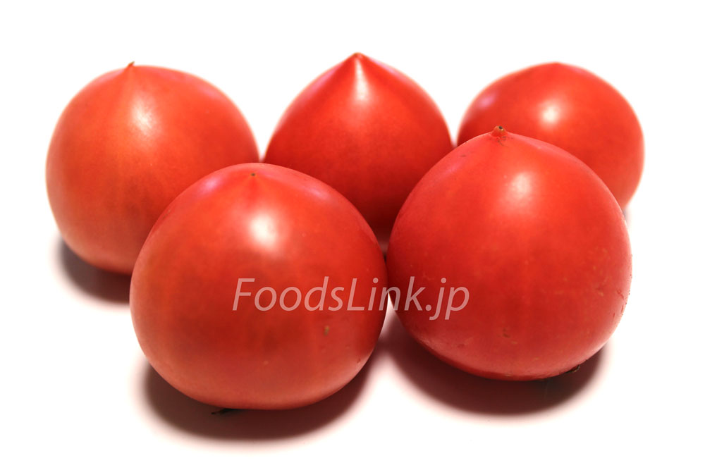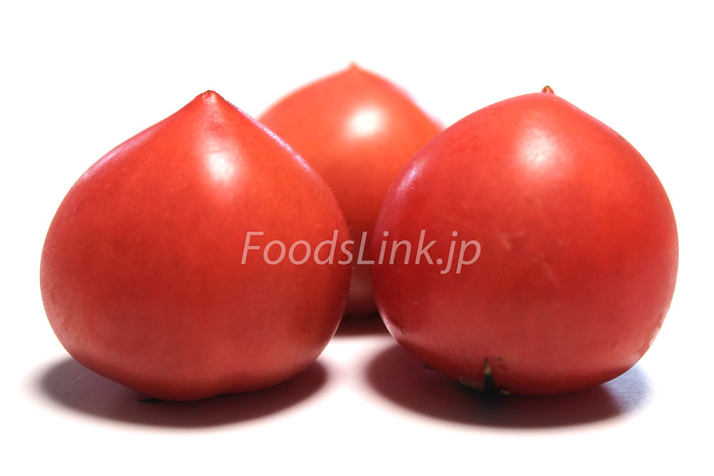 ルネッサンストマトの色々な画像を展示しています。ルネッサンストマトは果重は150g前後で、豊円からやや腰高の形にお尻がピンと尖っているのが特徴です。